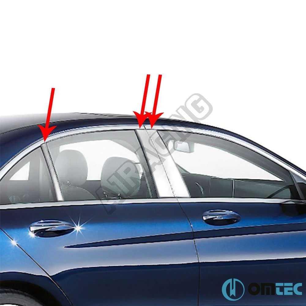 Nerez kryty okenných stĺpikov Mercedes C sedan W205 2014-21 - 100% nerez - presne tvarovaná forma