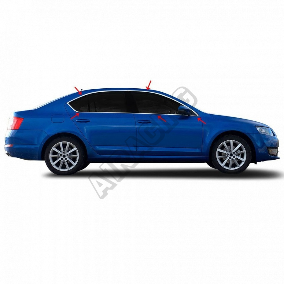 Nerez lišty bočných okien Omtec Škoda Octavia III 10 dielna sada (nie pre kombi)