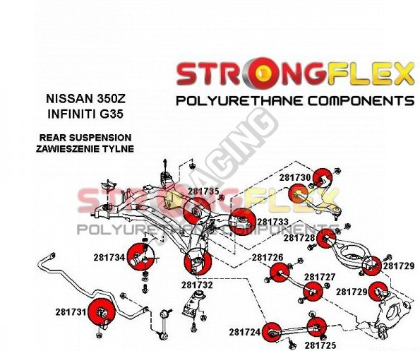Nissan 350Z StrongFlex Sport sestava silentbloků jen pro zadní nápravu 20 ks obsahuje: