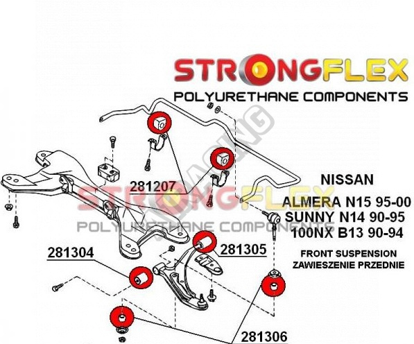 0recenzia produktuNissan Almera N15 1995-00 StrongFlex Sport sestava silentbloků jen pro přední nápravu 7 ks
