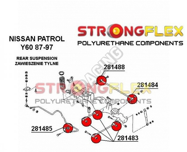 Nissan Patrol Y60 1987-97 StrongFlex Sport (tvrdost 90ShA) kompletní sestava silentbloků na celé auto obsahuje :