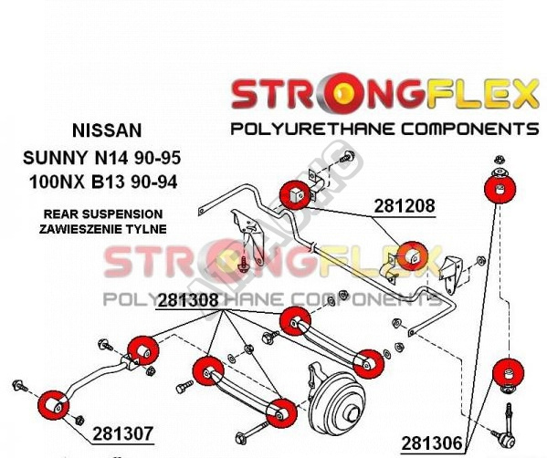 Nissan Sunny StrongFlex Sport sestava silentbloků jen pro zadní nápravu 15 ks Tvrdší silentbloky do