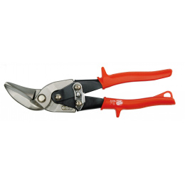 Kvalitné vystrihovacie nožnice na plech s čeľusťami z chróm molybdénovej zliatiny ocele. Tieto vystrihovacie nožnice majú čepele prispôsobené pre ľavé oblúky a priamy strih. Brity majú tzv. mikro ozubenie, ktoré zamedzuje zošmyknutiu plechu mimo os strihu.