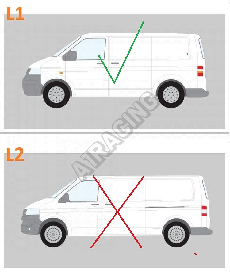 Určené pre Volkswagen Transporter T5 s krátkym rázvorom L1 (SWB). Nie je vhodné pre verzie L2 (dlhý rázvor).