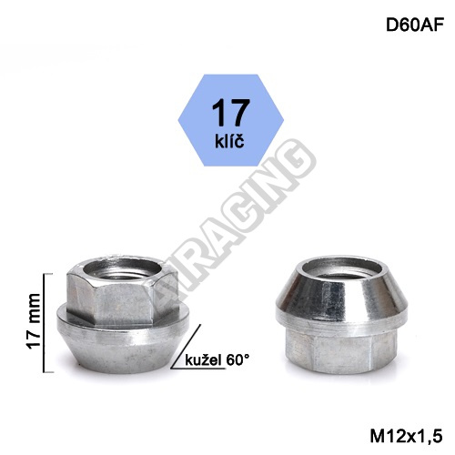 Odľahčená oceľová matica so zníženou hlavou M12x1,5 kužeľ chróm 1 ks Znížená uťahovacia hlava. Rozm