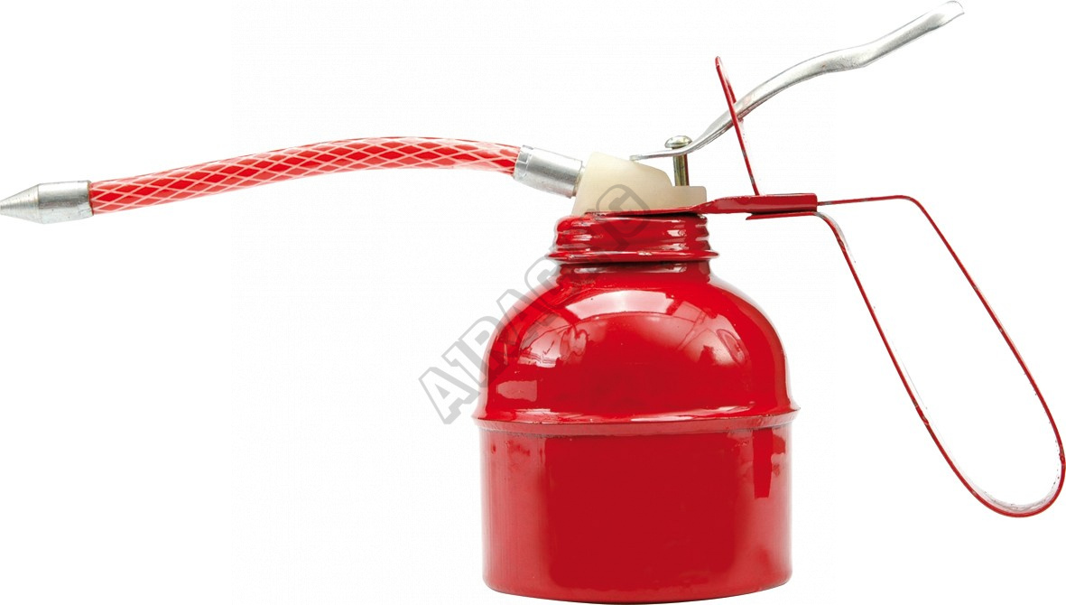 Ruční olejnička s hadicí, objem 300 ml. Nádoba na olej je vyrobena z kovu. Má čerpadlo, hadici a ruk