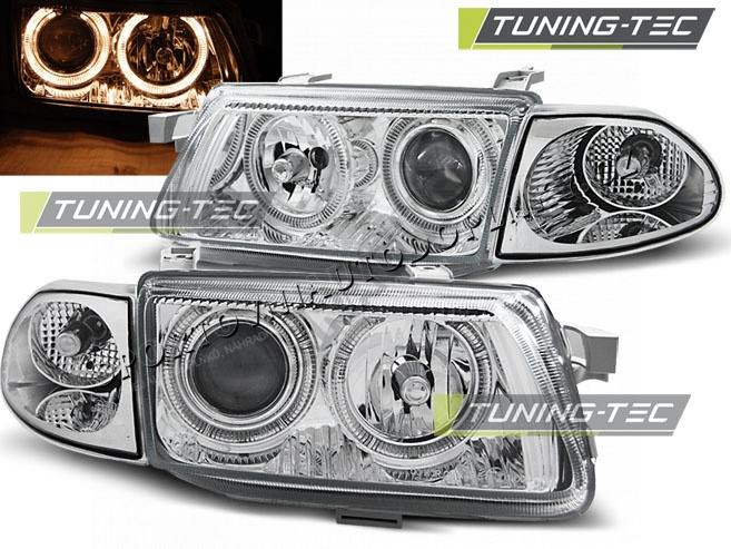 OPEL ASTRA F 09.1994-08.1997 PŘEDNÍ ČÍRÁ SVĚTLA ANGEL EYES CHROME