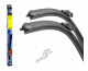 Stěrače FLAT SET (sada 2 ks na celé auto). Vysoce kvalitní pružný člen plochého stěrače zajišťuje stejnoměrný tlak grafitového břitu v celé jeho délce, což zamezuje rozmazávání nečistot a vytváření pruhů.