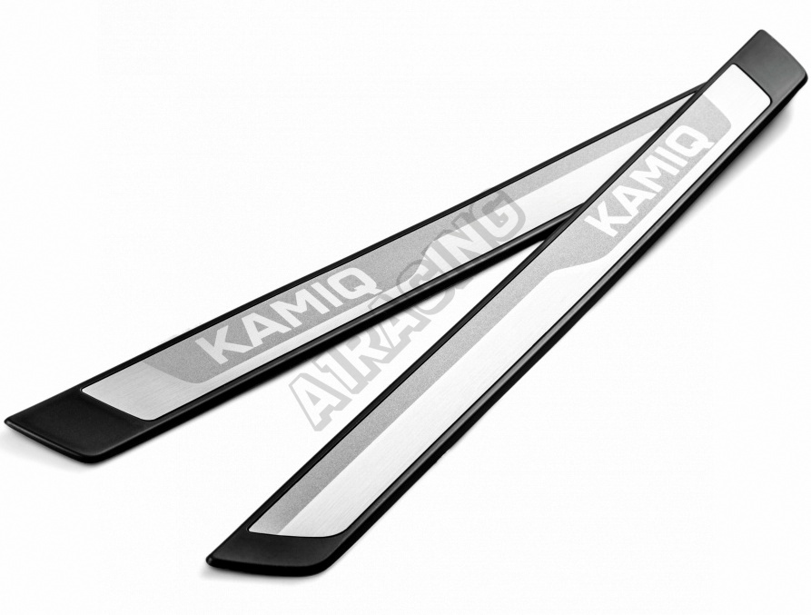 Originálne prahové lišty s ALU vložkou ŠKODA originálne príslušenstvo sú dekoratívnym doplnkom výbavy auta, ktorý zároveň ochráni lak prahu predných dverí pred nečistotami. V žiadnom prípade nie sú určené k nášľapu pri nastupovaní (vystupovanie) do (z) vozidla.