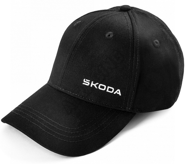 Originálna kšiltovka v čiernej farbe s tlačeným logom Škoda v bielej alebo šedej farbe.