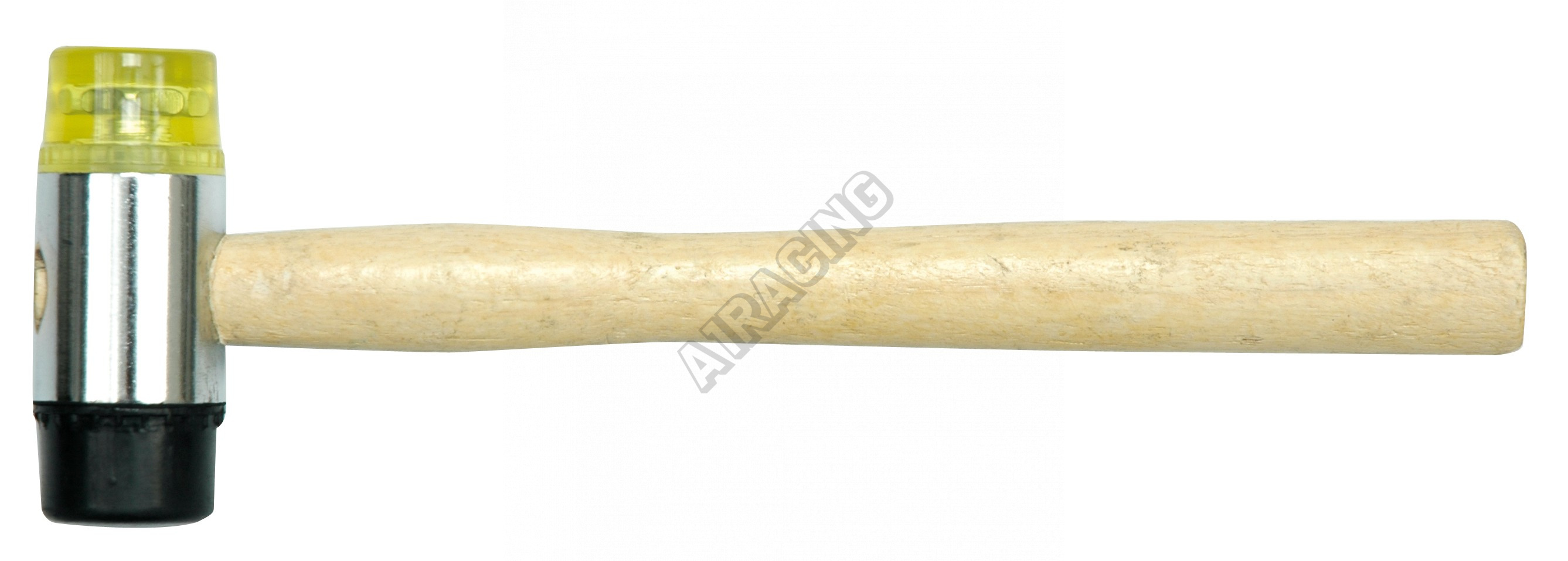 Na jedné straně gumová a na druhé kovová. Nasazené na dřevěnou, lakovanou rukojeť.Vhodné do klempířs