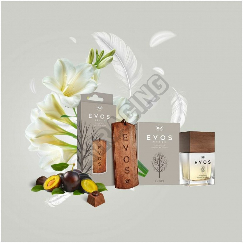 Parfém do auta EVOS GRACE představuje vynikající způsob, jak prodloužit životnost dřevěného vonného přívěsku K2 EVOS i EVOS GRACE. Po jejich nastříkání se závěs opět naplní ušlechtilou vůní, která se postupně uvolňuje do interiéru vozu.