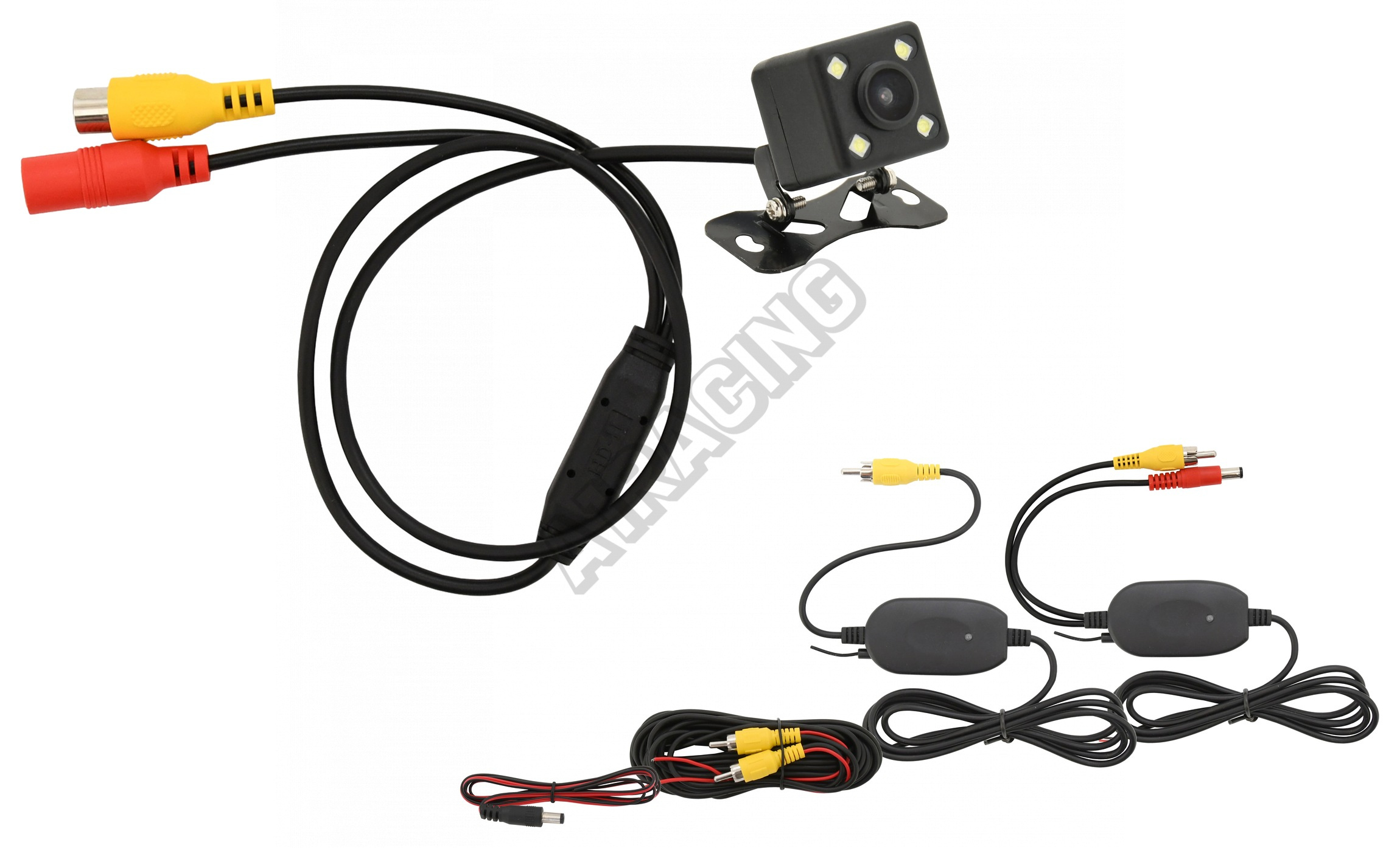 Celá sada je zakončena žlutým cinch konektorem video signálu (RCA), který je možné zapojit do libovolného displeje s video vstupem. V našem sortimentu jsou dostupné různé displeje vhodné pro umístění do auta.