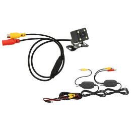 Balení obsahuje 1x kameru, bezdrátový vysílač a přijímač video signálu, kompletní kabeláž pro propojení s napájením i bezdrátovým vysílačem a přijímačem a pro případ potřeby i kabeláž pro přímé propojení bez bezdrátového přenosu.