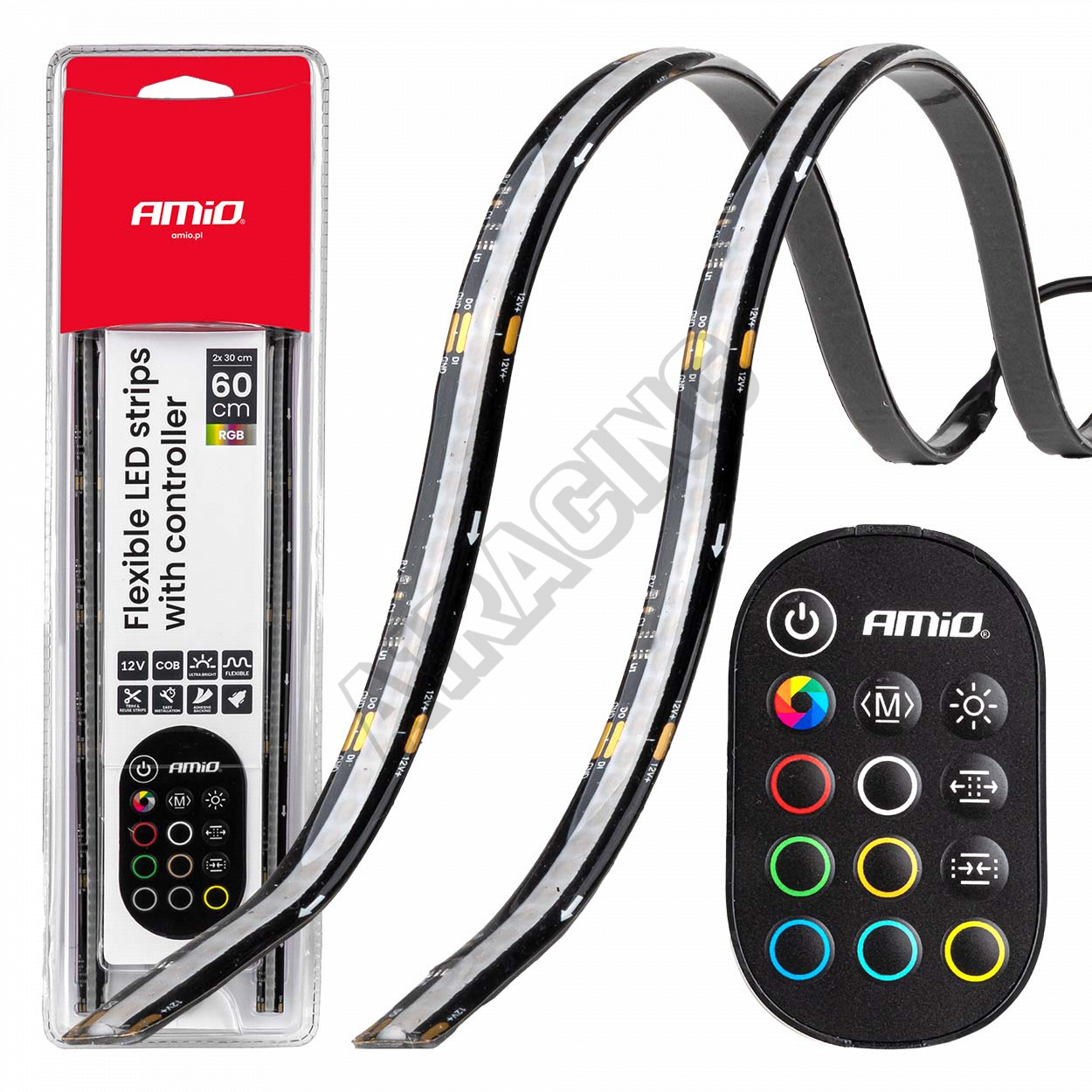 Pásky LED COB do auta viacfarebné multi color RGB s diaľkovým ovládaním 2x30cm 12V AMIO-0457925.79 EUR