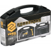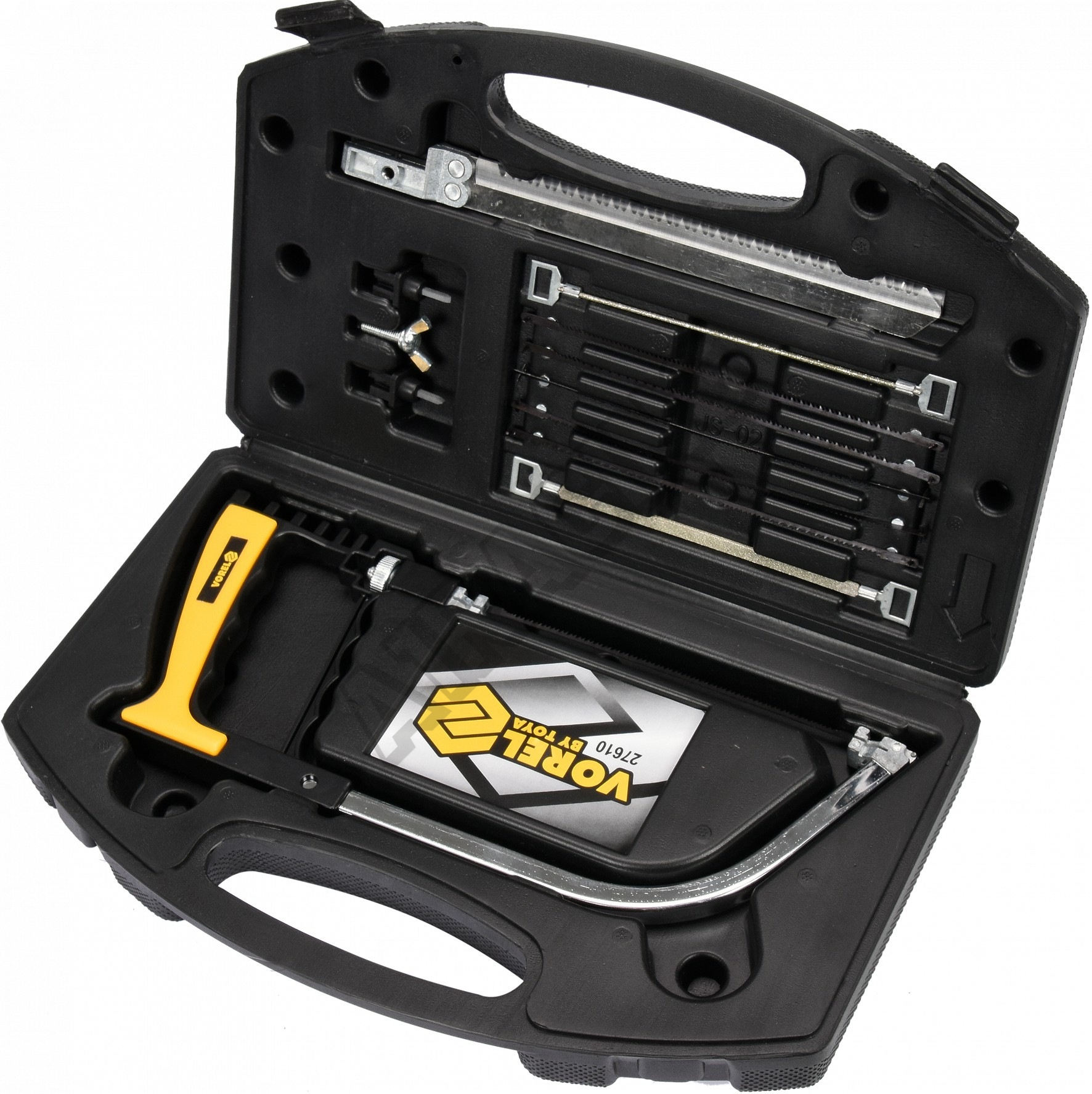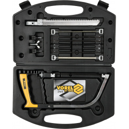 Součástí sady je l-175 x 20 pilový plátek pro agresivní řezání dřeva a většiny plastů, dalších 8 kusů pilových listů, z toho 6 univerzálních pro dřevo, kov a plast a 2 diamantové s kulatám profilem na keramiku a sklo.