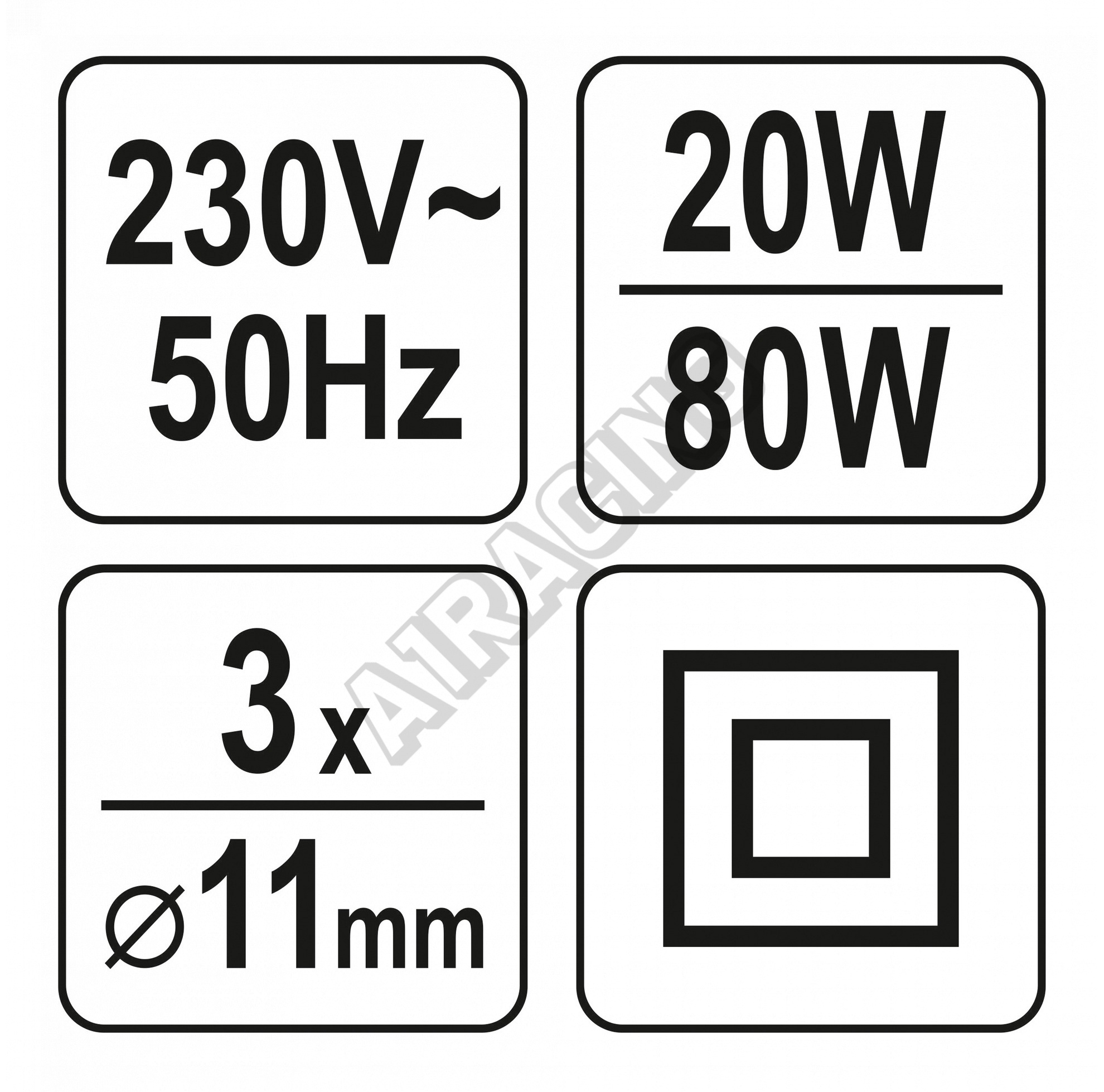 Lepiaca tavná pištoľ s výkonom 20/80 W určená na roztavenie a nanášanie tavného lepidla za účelom rýchleho zlepenia papiera, korku, dreva, kože, textílie, umelej hmoty, keramiky atď.