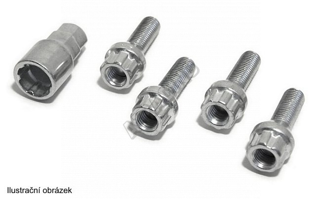 Poistné skrutky kolies M12x1,50x26mm guľové sedlo (C) 4ks + kľúč Pojistné šrouby kol ochraňují kola