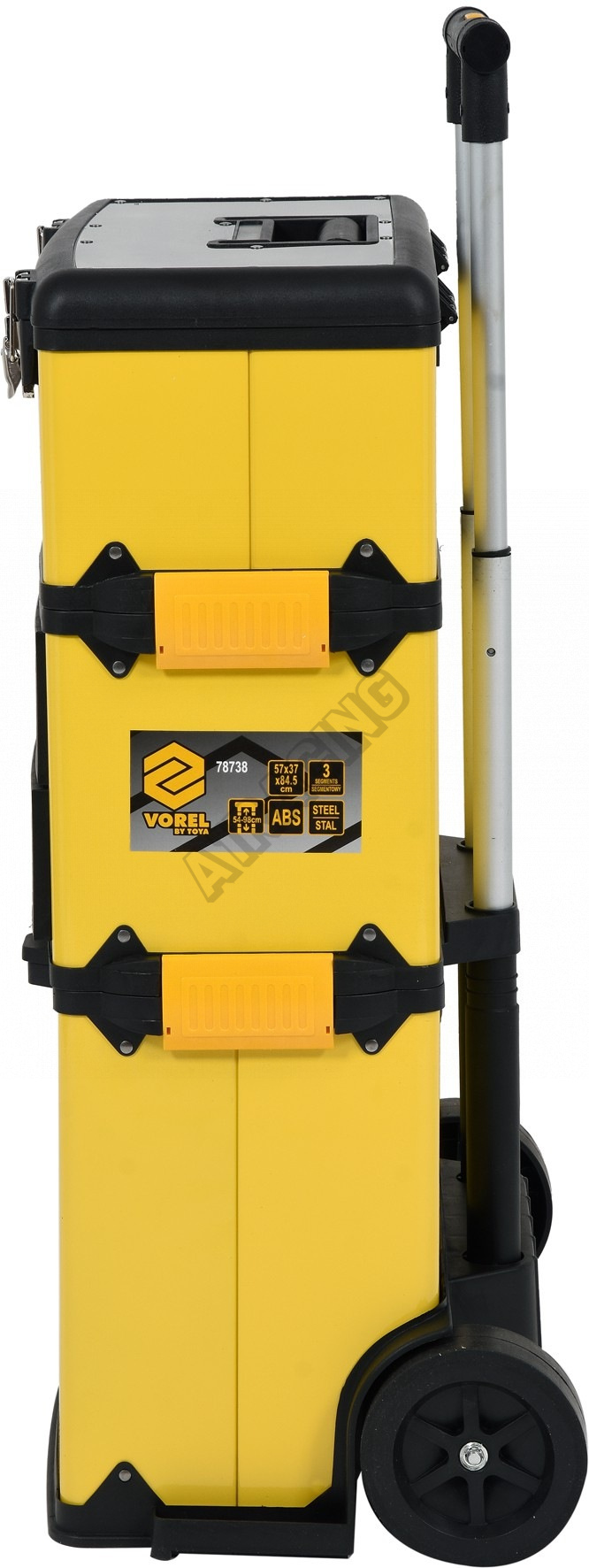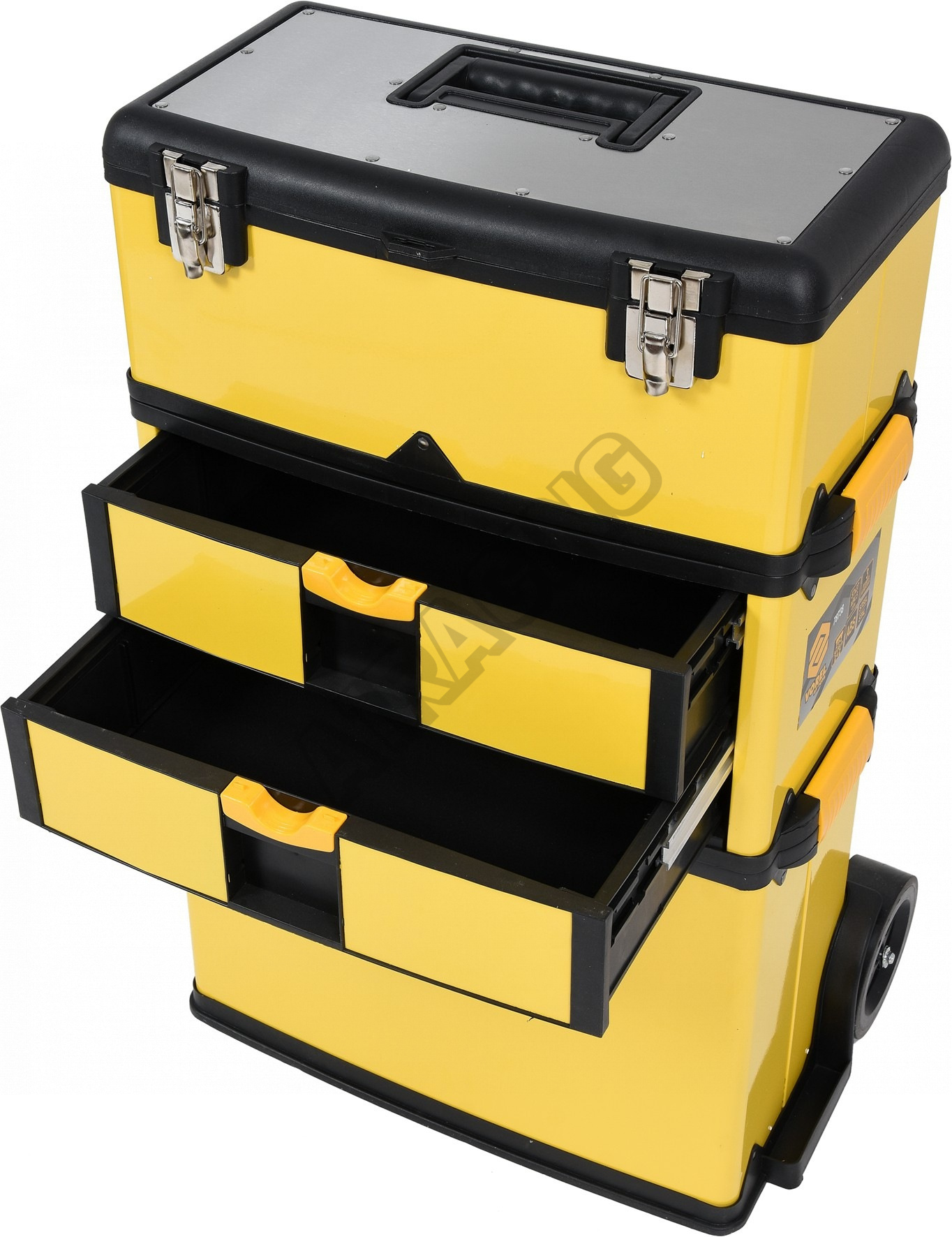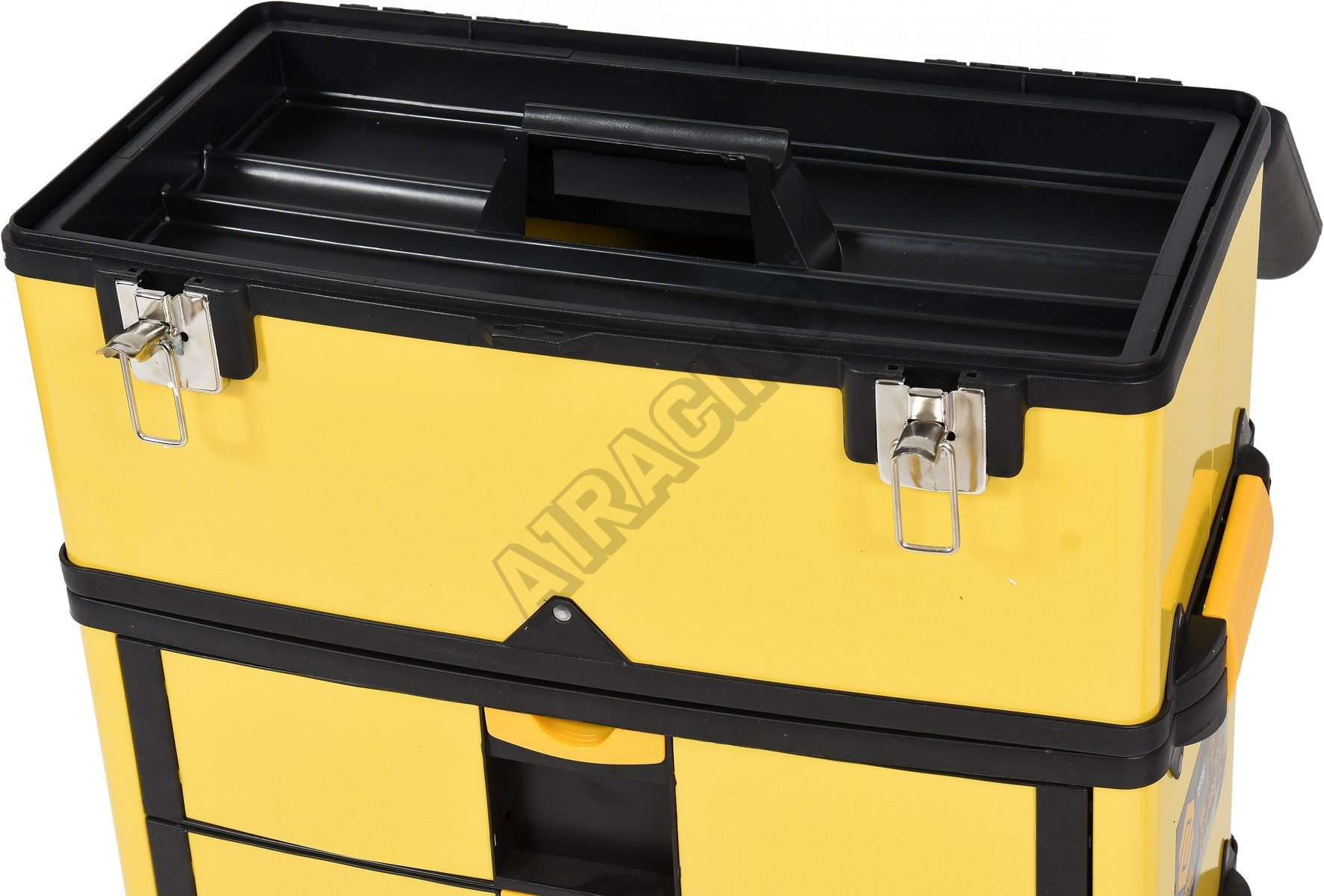 Třídílný mobilní vozík pro uložení drobného nářadí a příslušenství. Vyroben z ABS plastu o rozměrech