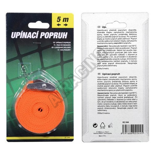 | Popruh upínací 1x5m Praktický upínací popruh s kovovou sponou, který najde široké uplatnění při upevňování předmětů.