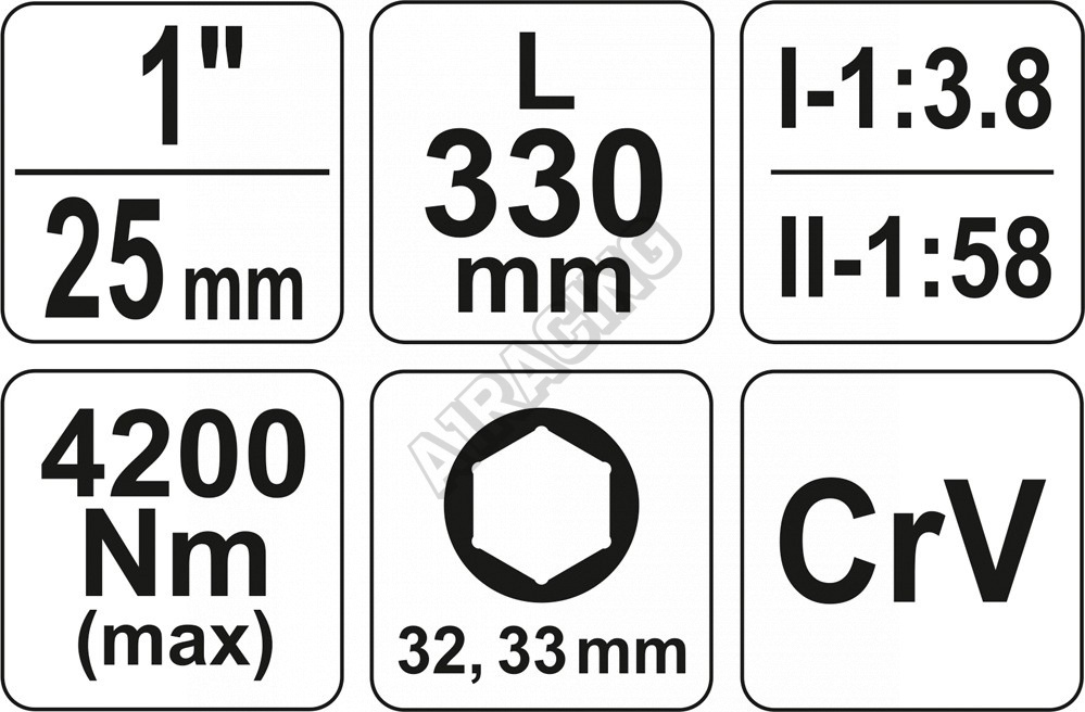 Klíč k povolování a utahování axiálních táhel řízení. Určeno pro táhla rozměrů 35 mm až 42 mm, osobn