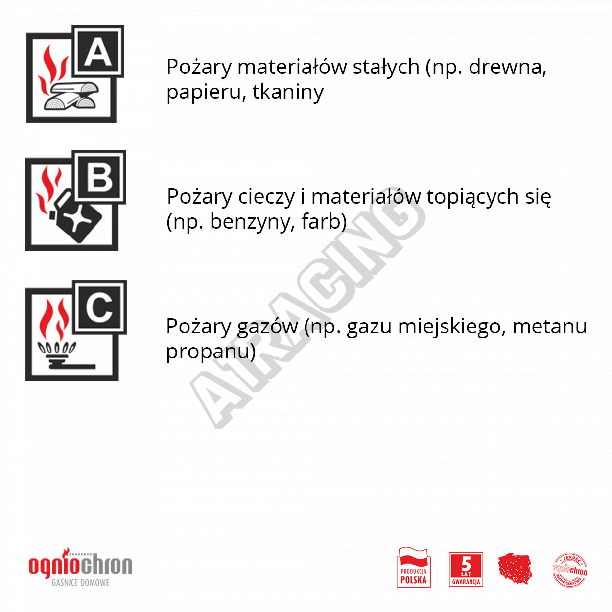 A – na hasenie požiarov pevných látok, ktoré pri horení nielen spôsobujú plameň, ale aj sa rozžeravujú, napr. dreva, papiera, gumy,