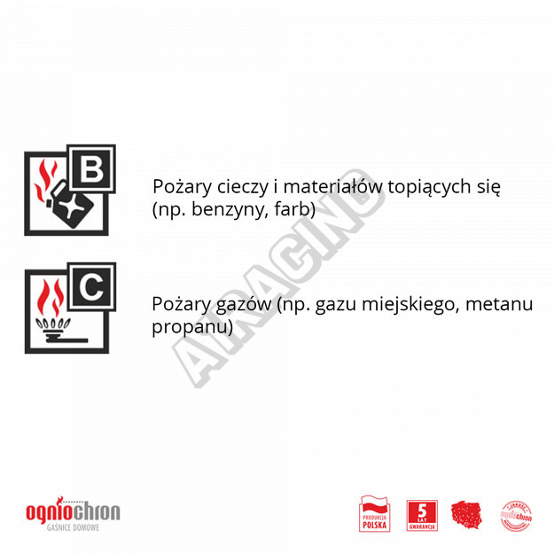 Hasiaci prístroj má 5-ročnú záruku.Vyrábaná lídrom v oblasti prenosného hasiaceho zariadenia v Poľsku, firmou OGNIOCHRON S.A.