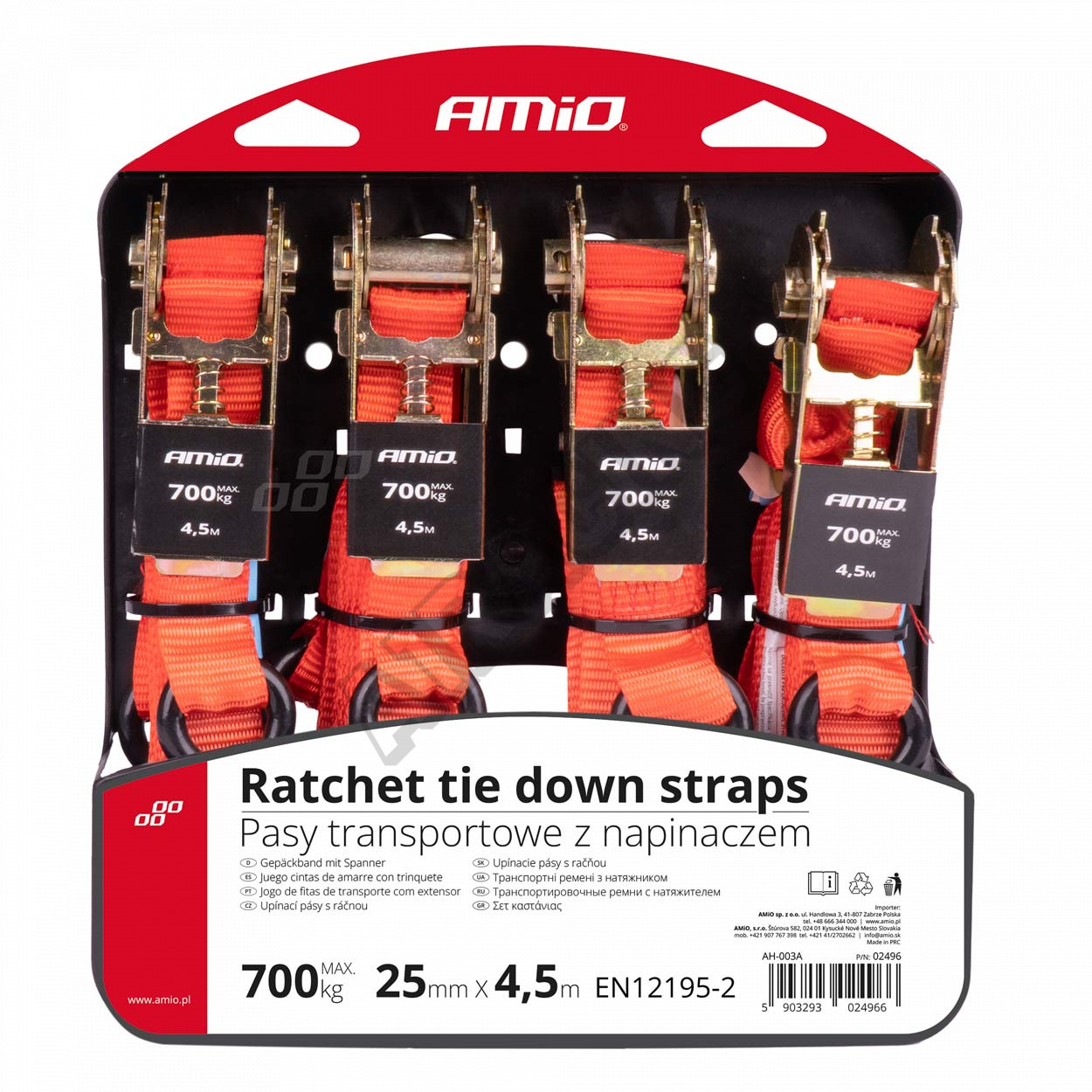 Prepravné popruhy s napínačom - kompletná sada 700 kg 25 mm 4,5 m 4 ks. BELT-0320.21 EUR