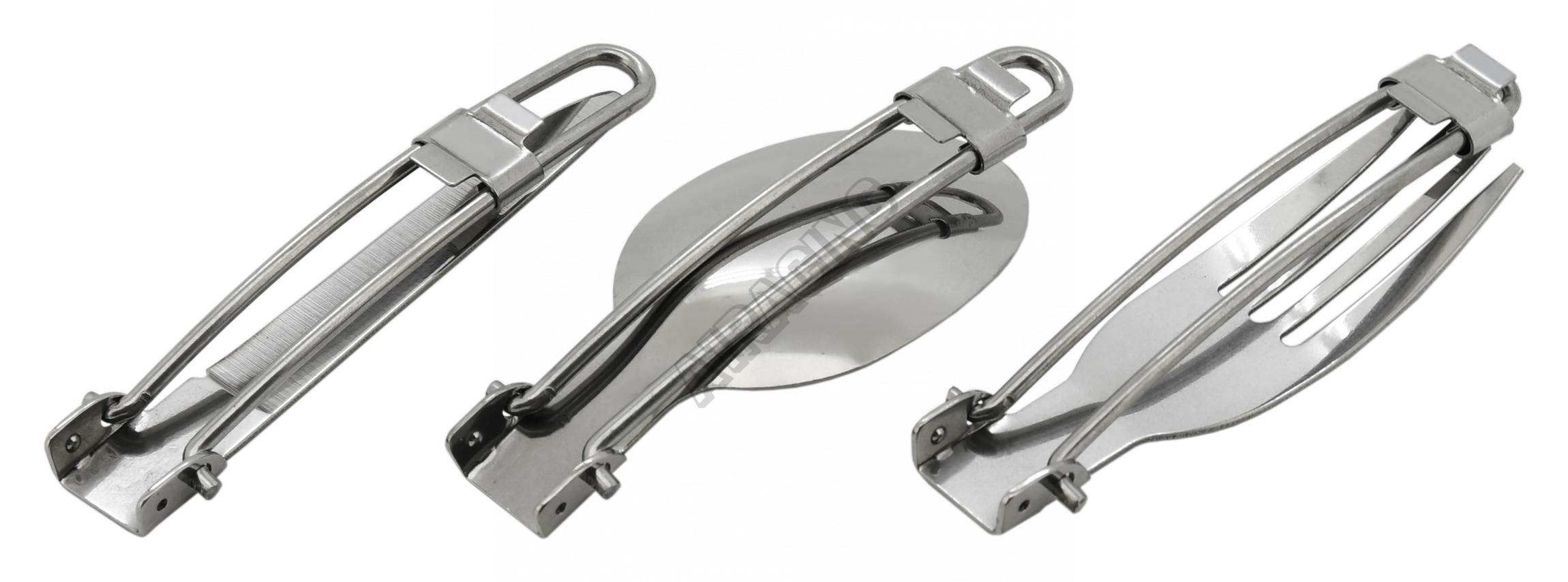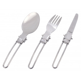 Sada se skládá ze lžíce, nože a vidličky délky 16 cm s celkovou hmotností 80g, uložených v textilním pouzdře s rozměry 8 x 12 x 3 cm.