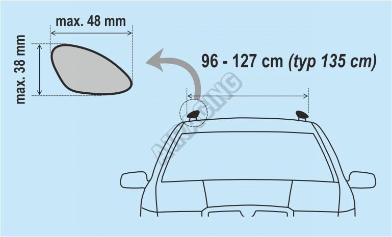 | pro vozy s roztečí podélných nosičů | 96 - 127 cm |