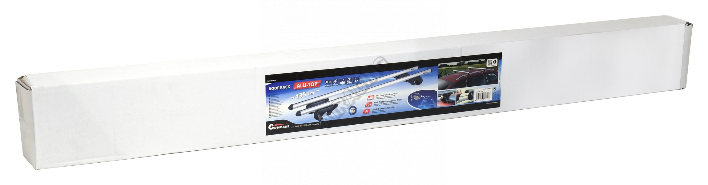 Příčník má délku 135 cm a je určen pro vozy s roztečí podélných nosičů až 129 cm a max. průřezem 45 x 74 mm.