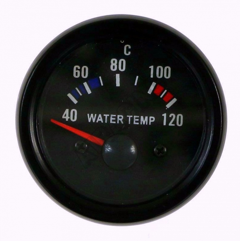 Prídavný budík KET teplota vody 52 mm Kvalitný lacný prídavný budík s priemerom 52 mm s čiernym diz