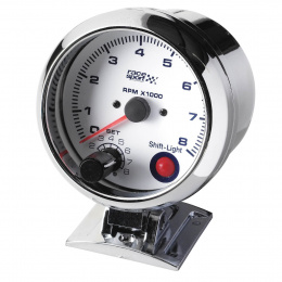 Prídavný otáčkomer Race Sport 90 mm 0-8000 RPM - nastaviteľný shift, biely