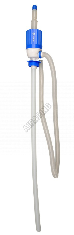 Plastová pumpa se sudovým závitem, která funguje tím způsobem, že v horní části má rukojeť s měchem, který je potřeba cca 3-4x stlačit, čímž se nasaje kapalina a potom již není potřeba více pumpovat, neboť kapalina vytéká samospádem.