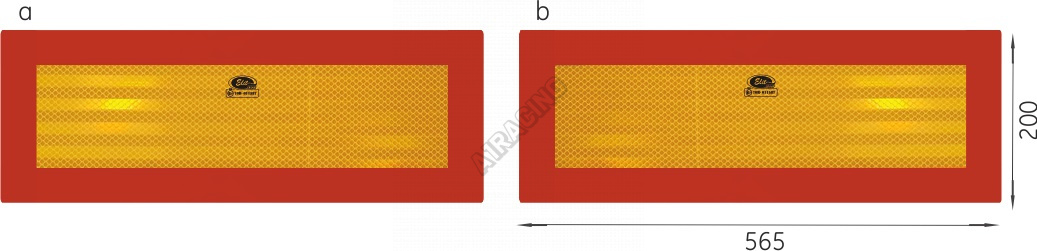 - rozmery žlto-oranžového odrazového "vnútorného": 485mm x 120mm