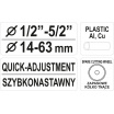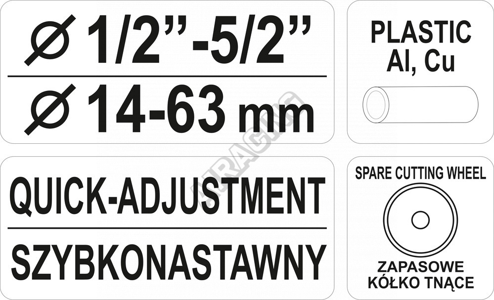 Řezač je vhodný pro různé průměry trubek 1/2" - 5/2" (14 - 63 mm).