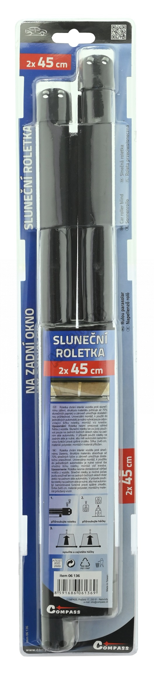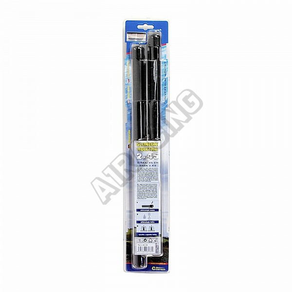 | Sada 2 kusov slnečných roletiek určených na použitie na oknách automobilu.2x45cm. Spôsob perforácie materiálu zaisťuje absorpciu cca 70% slnečných lúčov a zároveň umožňuje vodičovi maximum viditeľnosti ako vo dne, tak aj v noci. Farba čierna. Dĺžku vytiahnutej clony: 55,5 cm. | |