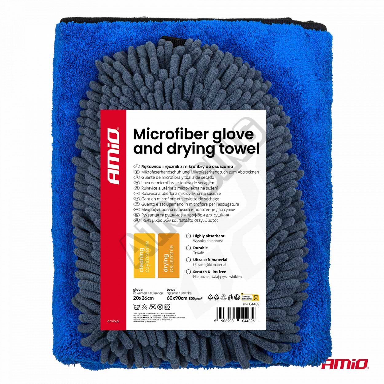 Rukavice z mikrovlákna a uterák na sušenie auta 94/800gsm 20x26/60x90cm AMIO-04489