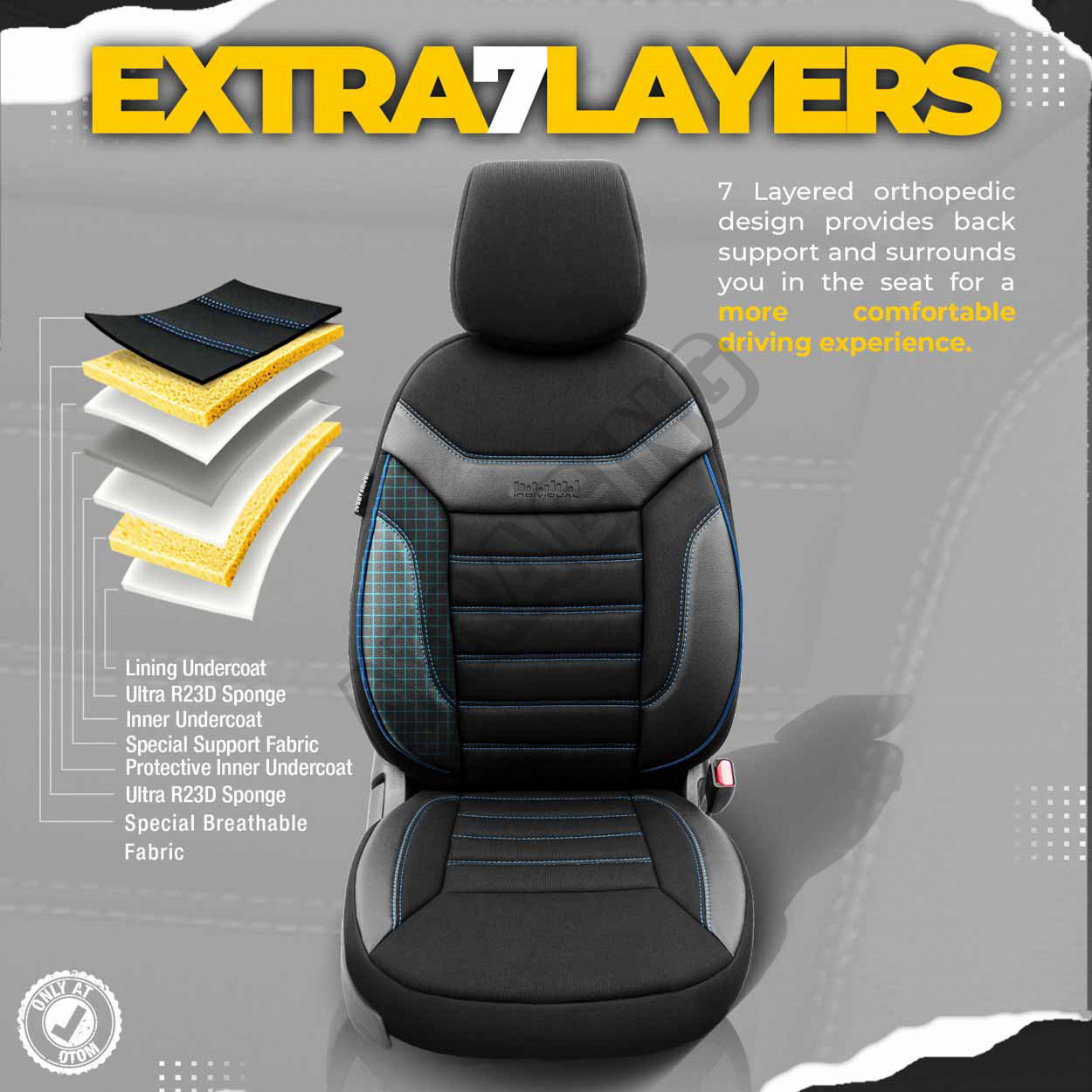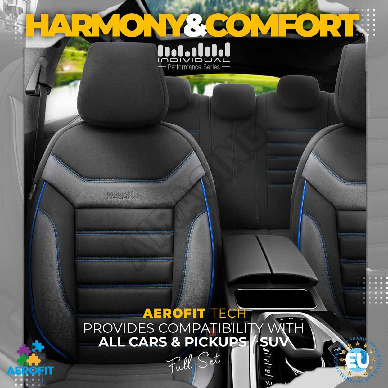 Poťahy v štandarde majú certifikovaný šev AIRBAG, vďaka čomu sú prispôsobené pre automobily ako s bočnými airbagmi v sedadlách, tak aj pre štandardné sedadlá. Vďaka použitiu špeciálneho švu, zakrývajú sedadlá vcelku, bez toho, aby narušovali funkciu AIRBAGov.