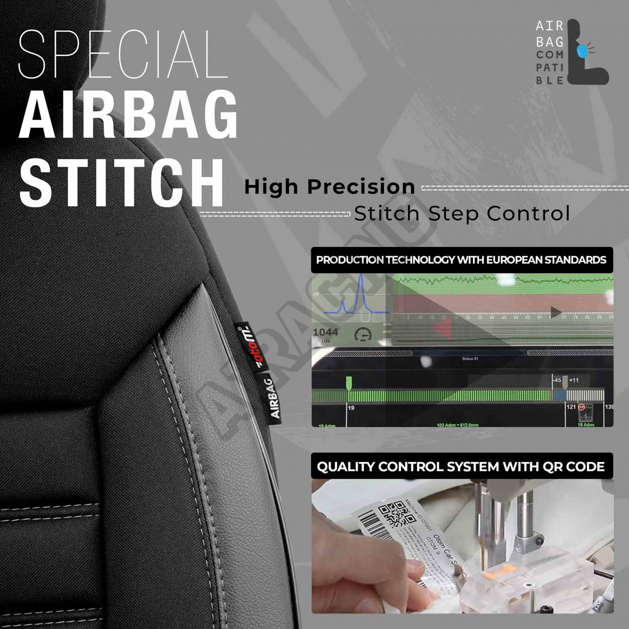 Poťahy v štandarde majú certifikovaný šev AIRBAG, vďaka čomu sú prispôsobené pre automobily ako s bočnými airbagmi v sedadlách, tak aj pre štandardné sedadlá. Vďaka použitiu špeciálneho švu, zakrývajú sedadlá vcelku, bez toho, aby narušovali funkciu AIRBAGov.