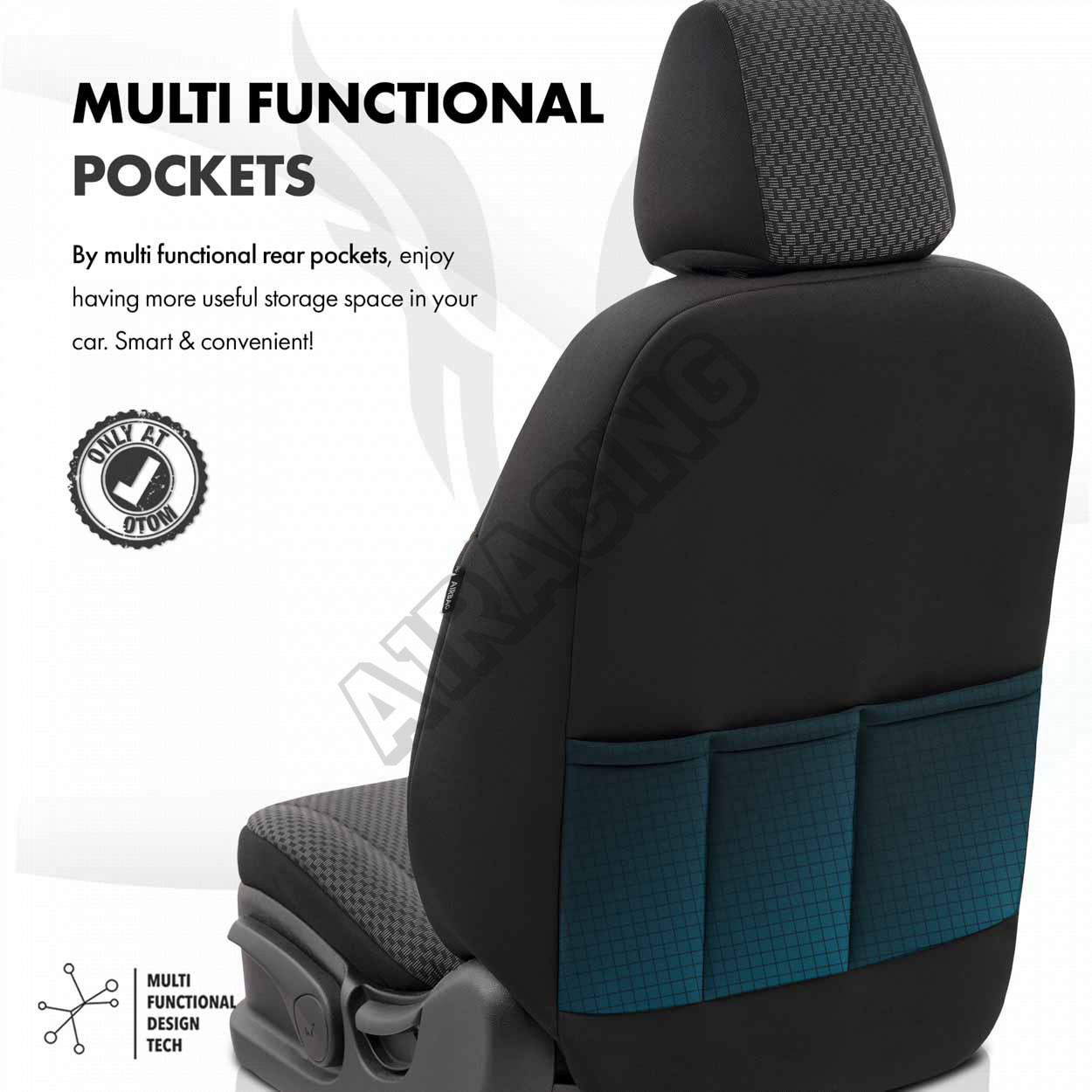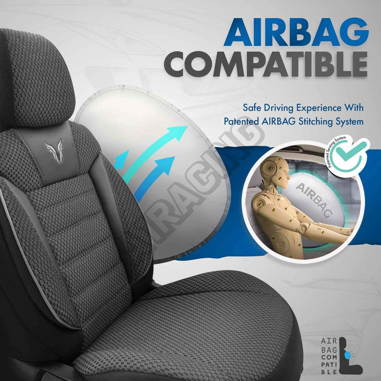 Vďaka použitiu špeciálneho švu, zakrývajú sedadlá vcelku, bez toho aby narušovali funkciu AIRBAGov.Samozrejme, toto riešenie je mnohokrát testované a certifikované.