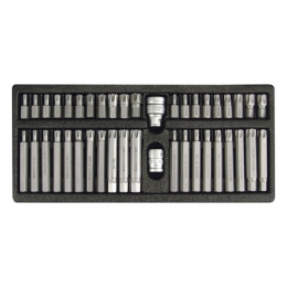 Tato sada je vhodná pro profesionály, především pro mechaniky. Bity jsou spolu s adaptéry uzpůsobeny pro práci s ráčnami 1/2" i 3/8". V sadě se nachází bity Torx T20-T70 a bity Ribe M4-M14 délek 30 mm a 75 mm, a ty jsou přehledně uspořádány v kovovém kufříku.