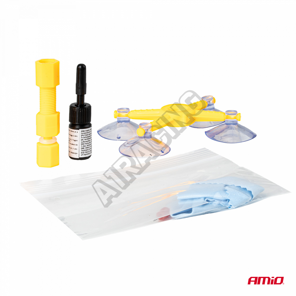Profesionálna sada určená na rýchlu a účinnú opravu drobných poškodení autoskiel, ako sú odštiepky a praskliny typu „očka“ alebo „hviezdičky“. Vďaka aplikátoru s prísavkou je možné presné nanesenie živice bez nutnosti demontáže skla.