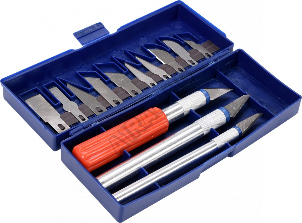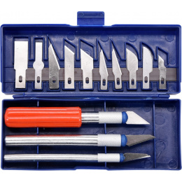 Sada přesných nožů na řezání textilu (patchwork), papíru, modelování z hmoty, lze použít i na vyřezávání do dřeva. Nože jsou zabaleny v praktickém přenosném plastovém pouzdře.