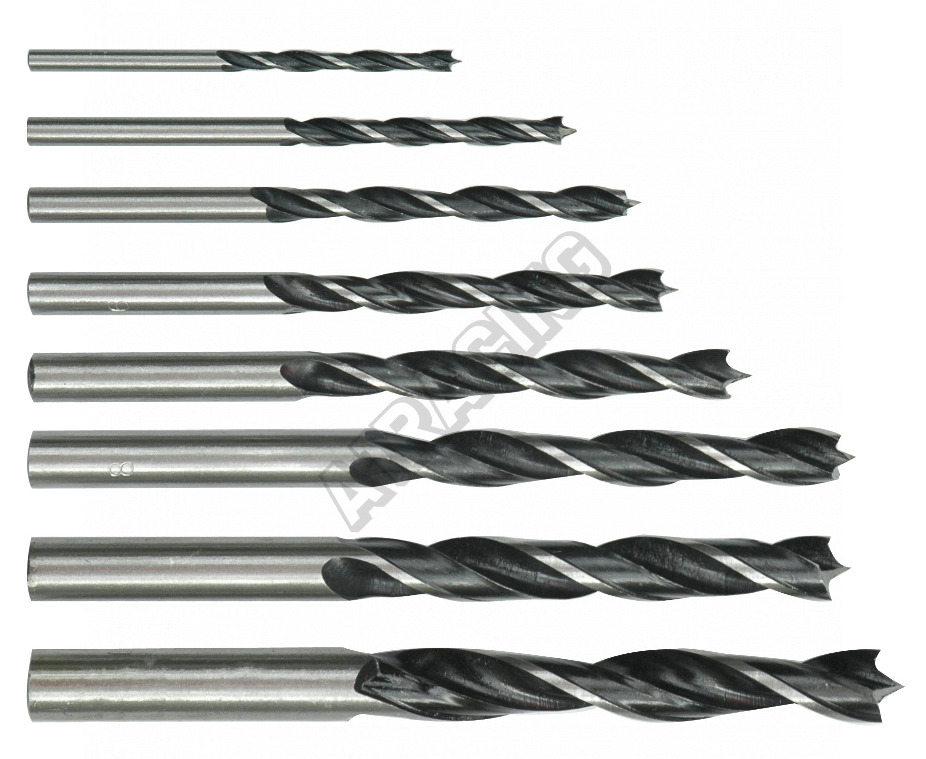 Sada 8 ks vrtáku do dřeva. Vrtáky jsou zhotoveny z uhlíkaté HCS oceli. Technická data počet 8 k