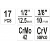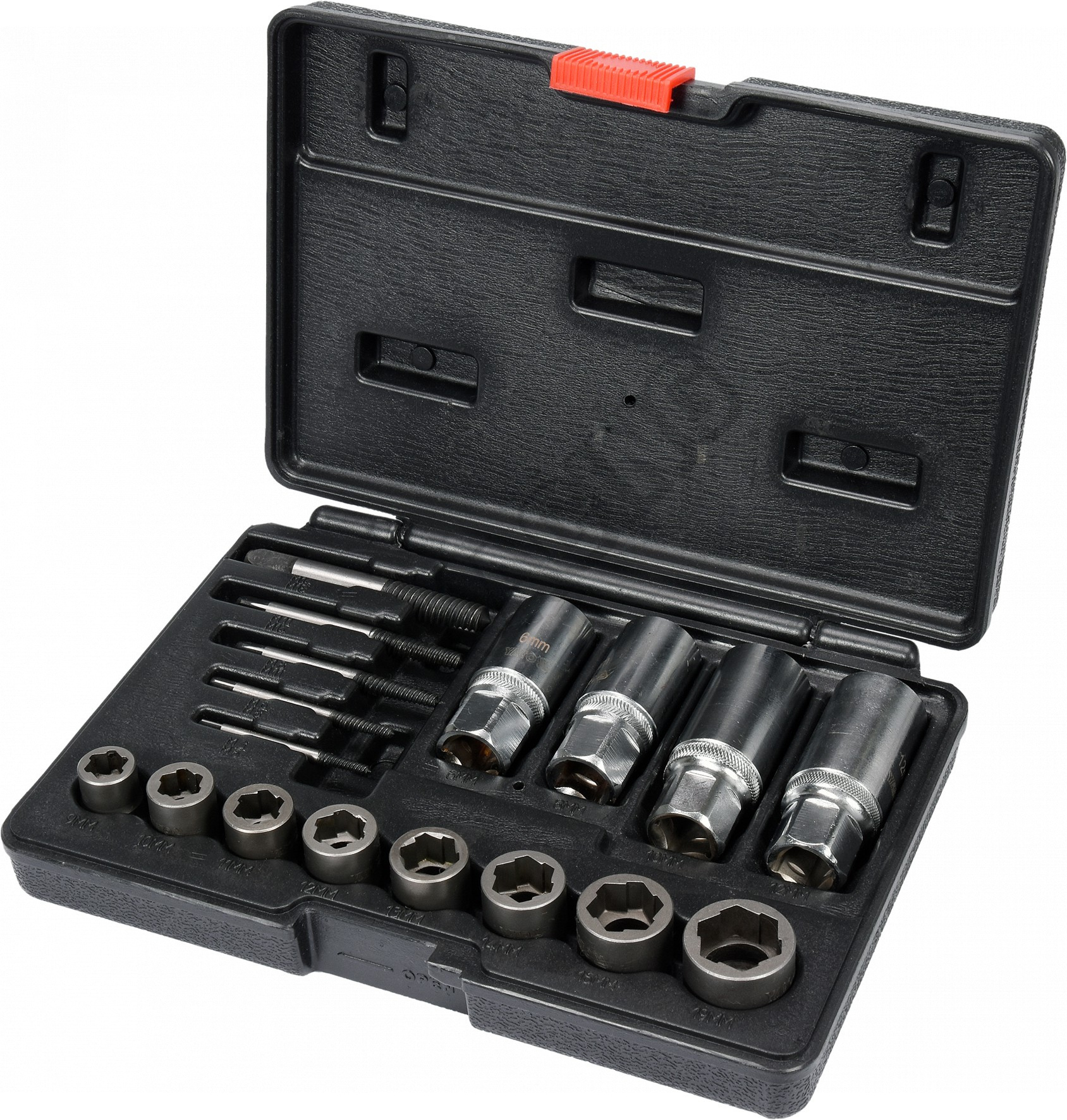 Univerzální 17dílná sada vytahováků šroubů a nástrčných klíčů. Doporučeno pro mechanické a automobilové služby.