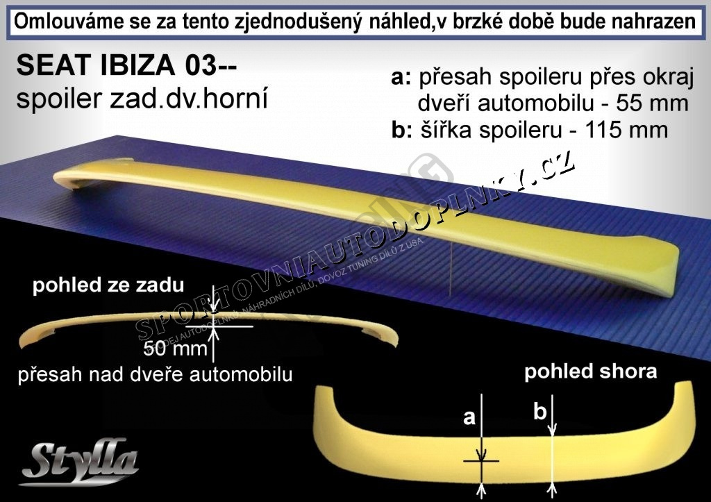 SEAT IBIZA (03+) spojler chrbta. dverí hornej (EU homologácia)