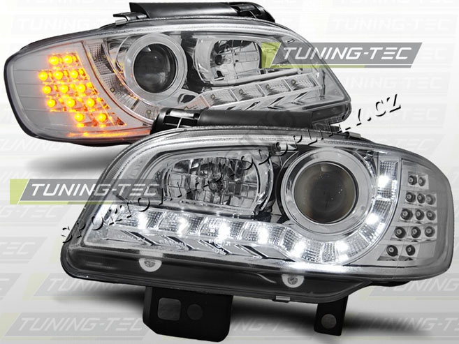 SEAT IBIZA/CORDOBA 1999-02 PŘEDNÍ ČÍRÁ SVĚTLA DAYLIGHT LED CHROME
