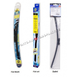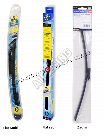 Stěrače FLAT SET (sada 2 ks na celé auto). Vysoce kvalitní pružný člen plochého stěrače zajišťuje stejnoměrný tlak grafitového břitu v celé jeho délce, což zamezuje rozmazávání nečistot a vytváření pruhů.