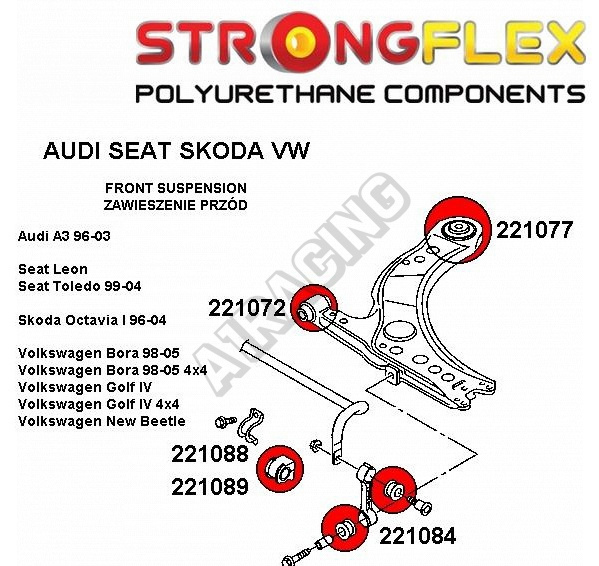 Seat Toledo II StrongFlex Sport sestava silentbloků jen pro přední nápravu 10 ks211.84 EUR